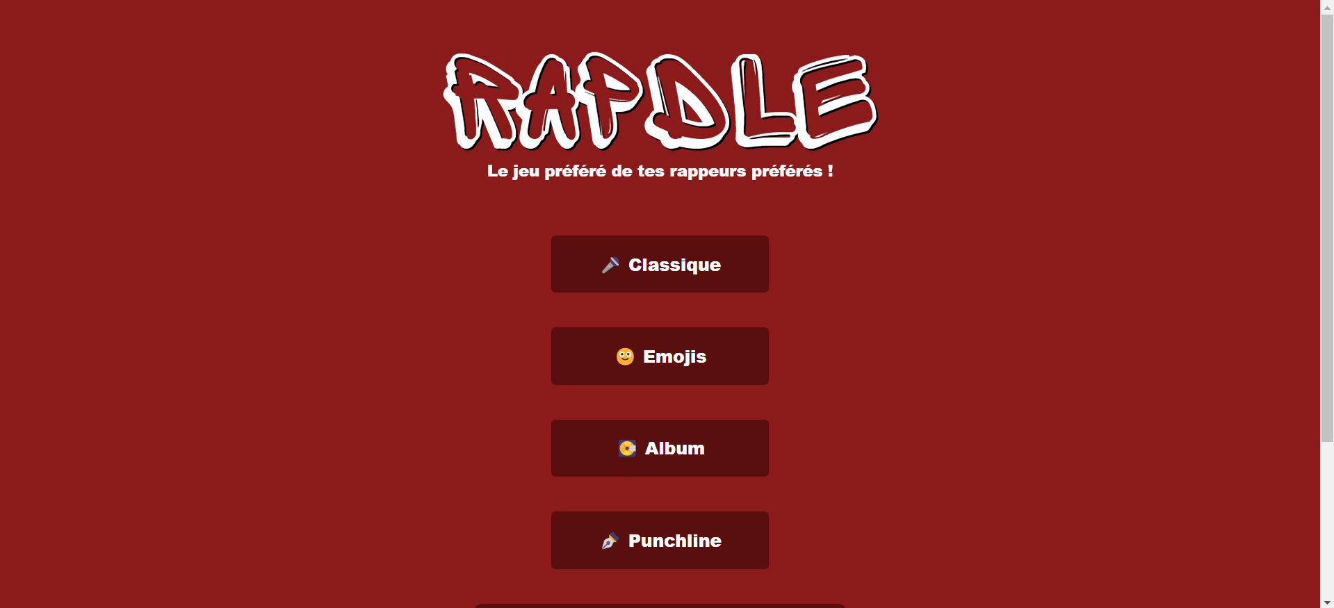 Il s'agit de 4 mini-jeux quotidiens (🎤 Classique / 🙂 Emojis / 💽 Album / ✒️